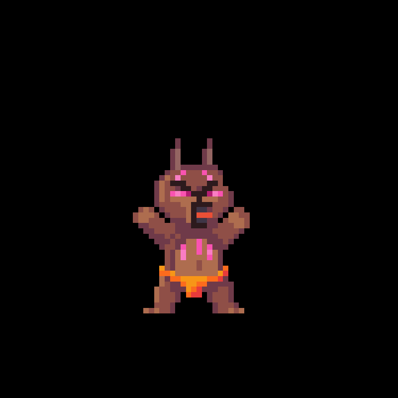 a bugbear child minion. a short, brown, muscular baby bugbear creature with a menacing expression and pink features. cute mean. ewok cuteness, but trying to be tough and mean. The creature has a dark brown body with prominent muscles indicated by lighter brown shading. It has two small, pointed ears on top of its head, which are the same pink color as other facial features. Its eyes are glowing pink ovals, and it has pink markings around them, suggesting an angry or intense gaze. The creature's mouth is open in a snarl, revealing a pink tongue or inner mouth. There are also pink markings on its chest and stomach, resembling tribal tattoos or battle scars. The creature is wearing a simple, orange loincloth. Its arms are bent at the elbows, with fists clenched and held up in a somewhat aggressive or defensive pose. Its legs are spread apart, indicating a sturdy, grounded stance. with bold outlines and a slightly grainy texture, anime style, Studio Chizu, emotional realism, vibrant digital palettes, modernized studio ghibli, Makoto Shinkai-inspired anime illustration, ultra detailed, cinematic lighting, no text, 4k, hd, extreme details --ar 58:77 --raw --profile lfme4j6 --stylize 300